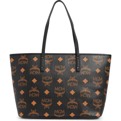 MCM Medium Aren Shopper In Maxi Monogram Visetos In Black