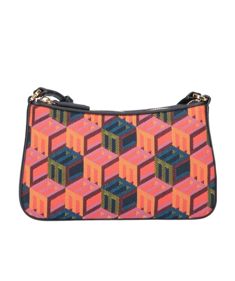 Color jacquard shoulder bag, adjustable shoulder straps, zipper closure, metal hardware, Cubic Monogram jacquard.