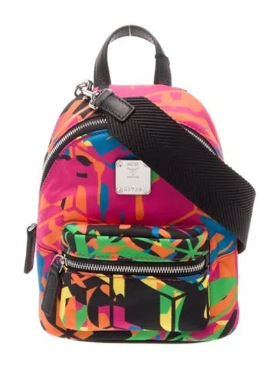 MCM Backpack Black Nylon Printed Silver-Tone Hardware Single Adjustable Shoulder Strap Leather Trim Embellishment & Single Exterior Pocket Nylon Lining & Single Interior Pocket Zip Closure at Top | MCM Nylon Backpack in Black