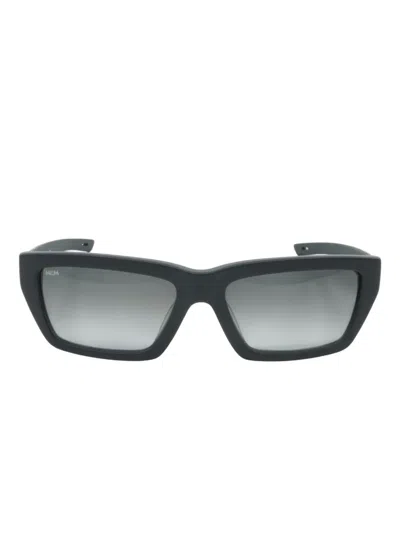 black rectangle frame grey tinted lenses UV-protective lenses logo print at the arm straight arms curved tips These glasses come with a protective case.