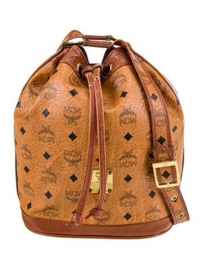 MCM Shoulder Bag Brown Printed Gold-Tone Hardware Logo Jacquard Lining Drawstring Closure at Top | MCM Shoulder Bag in Brown