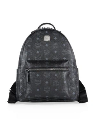 Reimagined in a miniuature version, MCM's stark classic backpack is the way forward in the urban styling world. A signature style from the coveted German label, the monogrammed body is punctuated with gun metal toned studs for an injection of inner city luxury. Finished with oversized zips and front and side pockets, this piece offers an opulent new direction for a practical staple. (Height 21.5cm, width 17cm, depth 12cm)MCM mini leather backpackAll over monogramme print, stud detail at sides, branded plaque at frontTop carry handle, adjustable shoulder straps, front zipped pocket, top zipped main compartmentUse specialist cleanerHeight 21.5cm, width 17cm, depth 12cm