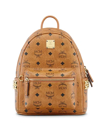 MCM Stark Side Studs Backpack In Visetos In Cognac