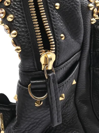 black studded design top handle front zip-pocket gold-tone hardware adjustable shoulder straps Condition: GOOD. This previously owned and used item is in good condition with minimal signs of use. This may include fading of material or plating and scratches.