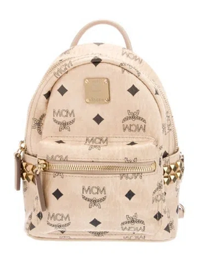 MCM Backpack Neutrals Printed Visetos Gold-Tone Hardware Leather Trim Flat Handle & Dual Adjustable Shoulder Straps Leather & Studded Accents Single Exterior Pocket Leather Lining & Single Interior Pocket Zip Closure at Top | MCM Visetos Backpack in Neutrals