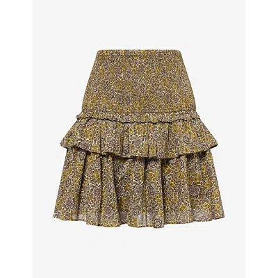 Womens Trailing Lotus Print Shirred Cotton Mini Skirt