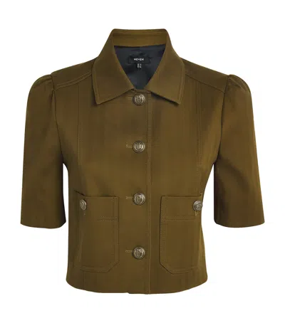 ME+EM Stretch-organic Cotton Herringbone Jacket In Green