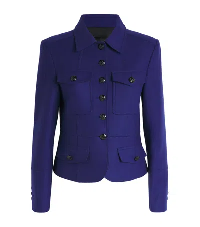 Crafted from an Italian wool-blend fabric and brushed for a hint of texture, this fitted jacket from me+em displays the label's Jewel Blue hue to dazzling effect. Note how it falls to a short length, perfect for styling seamlessly with high-waist separates.