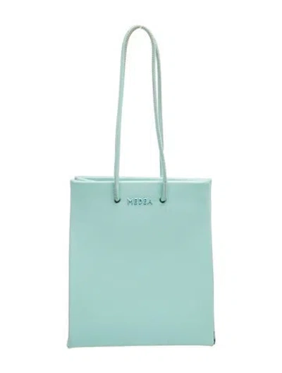 Medea Top Handle Bag Blue Leather Silver-Tone Hardware Leather Lining Open Top Protective Feet at Base Unfortunately, due to restrictions, this item may not be eligible for shipping in all areas. | Medea Leather Top Handle Bag in Blue