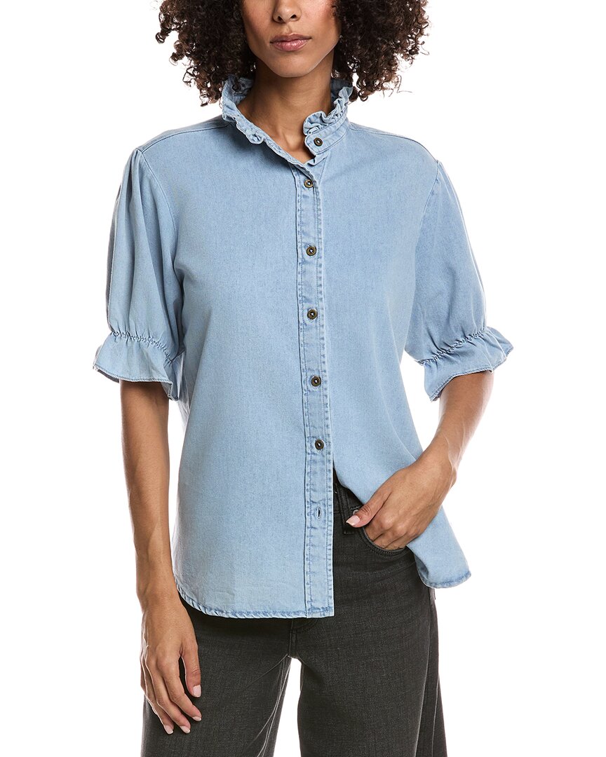 Introducing the MEIVEN Top, a must-have addition to your wardrobe. This stylish blouse features a beautiful blue color/pattern, perfect for adding a pop of color to any outfit. The ruffle collar, elasticized cuffs, and inverted back pleat add unique design details, while the button front closure adds a touch of sophistication. Made from a blend of 75% cotton and 25% polyester, this top is both comfortable and stylish. Whether you're dressing up for a night out or keeping it casual, the MEIVEN Top is a versatile piece that can be dressed up or down. Hand wash and imported. Add this chic blouse to your collection today!