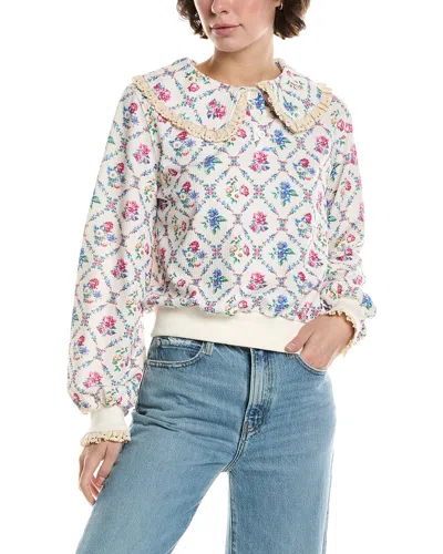 Introducing the MEIVEN Top, a stylish and elegant addition to your wardrobe. This women's skirt features a beautiful white multicolor pattern with lace trim and a puritan collar for a sophisticated look. The button placket adds a touch of classic charm, while the 95% polyester and 5% spandex material ensures a comfortable fit. The contrast 100% cotton detailing adds a unique touch. This top measures approximately 21 inches from shoulder to hem, and the model is 5'9' and wearing a size small. Hand wash only. Imported. Elevate your style with the MEIVEN Top today!