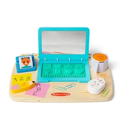 It's never been so much fun for one-year-olds to "get to work" on developmental skills! Infants and toddlers will love playing with this wooden version of a laptop and desk just like grown-ups do! Open the screen to reveal a peekaboo mirror to tap into babies' fascination with faces. Rubberized keyboard buttons are fun to press and help kids develop fine motor skills and shape recognition. Spin the rolling contact list to hear the beads inside tumble. Turn the wooden pencil and slide the adorable mouse-shaped mouse in its track! Flip the top of the attached mug to choose hot chocolate or juice artwork. With a built-in carrying handle and no loose pieces, the sturdy wooden activity board is great for travel and families on the go. This Melissa & Doug learning toy is an engaging way to encourage face-relevant stimuli and to help infants 12 months and older develop important sensory and fine motor skills. Melissa & Doug infant and toddler toys inspire "a-ha!" Moments of discovery. Adorable, diverse characters and a variety of fun shapes and textures encourage exploratory, skill-building play. This product is certified by the forest stewardship council. FSC certification ensures that products come from responsibly managed forests that provide environmental, social, and economic benefits, and that forests are protected for future generations. Please note that FSC certification applies to new inventory only (FSC c156584)Recommended Ages: 1 Year And UpMeasurements: 10.4 Length/InchesBase Material: 75% Wood, 25% PlasticCare: Spot CleanCountry of Origin: Imported