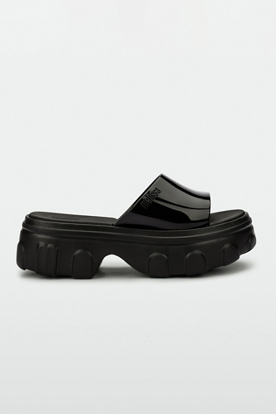 Slide into icon status with the Melissa Ella Slide, a treaded soled style whose fun design is inspired by the creative fisherman sandal aesthetic. Perfect with all your fashion creations, it will add enhanced comfort and practicality to your days. Available in a variety of trendy shades. Slide silhouette. Inspired by fisherman sandals. Available in a variety of trendy shades. Comfortable and practical. Monoblock Full Plastic PVC upper with polished finish. EVA insole with flat Melissa logo. Full Plastic PVC vamp. Treaded outsole with EVA "M" details on the side. An innovative slide that stands out from the ordinary. The upper is crafted from 100% PVC, the insole from laminated PVC, and the sole from 100% EVA. Its robust treaded sole draws inspiration from the latest fashion trends spotted on runways and city streets. Bold, witty, and quintessentially on-brand. Easy to maintain, simply wipe clean.