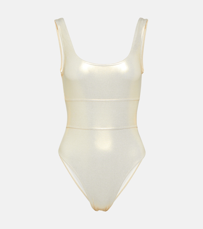 MELISSA ODABASH Perugia Open-back Paneled Metallic Swimsuit In Gold