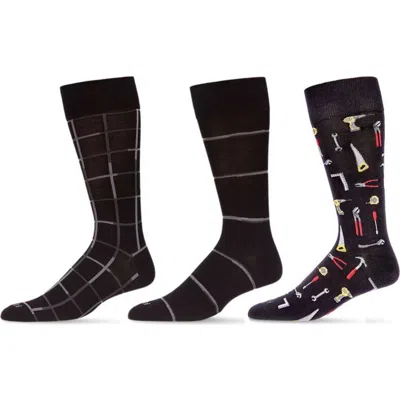 MEMOI Professions Assorted 3-pack Crew Socks In Gray-black