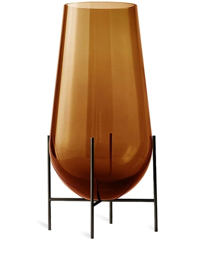 Stylish glass vase designed by Theresa Rand for Danish brand Menu.Part of Menu's beautiful Échasse collection.Made from mouth blown amber glass.Elevated by four slender bronzed brass legs.The vase's base takes inspiration from the French word ‘Échassse’, meaning stilts.Makes the perfect adornment whether filled with flowers or as a beautiful stand alone piece.Dimensions: Height 28cn Diameter 10/15cm.The Echasse Vase was designed by Copenhagen based architect Theresa Rand for Danish brand Menu.This elegant drop shaped vase is in a beautiful amber colourway and is elevated by four slender bronzed brass legs.Whether filled with your favourite flowers or used as a stand alone object the Menu Echasse Vase will add style and elegance to any interior.