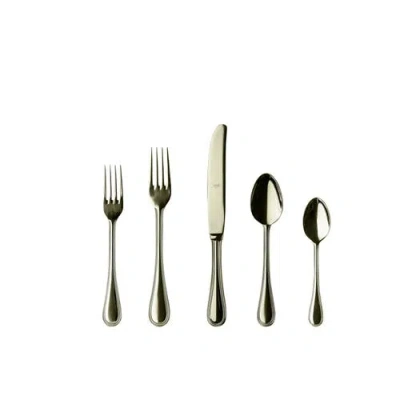 The Perla collection by Mepra is flatware that exudes luxury as a lifestyle. It is designed by Giulio Lacchetti and exalted through generations of tradition, technique and superb materials. Experience Italian craftsmanship at its finest with our meticulously crafted flatware collection. Made in Italy from premium 18/10 stainless steel and featuring a substantial 4.0mm thickness, each piece embodies exceptional durability and ergonomic comfort. The knives, with their double serration for enduring sharpness, complement the collection's elegant design, and the dishwasher-safe feature ensures effortless maintenance, transforming every meal into a sophisticated affair. Made in Italy Stainless steel is coated with PVD. The finish is a durable titanium coating. Lifetime warranty on manufacturing defects Dishwasher safe Easy to wash Hygienic Knives have double serration for durable sharpness. 4 mm thick