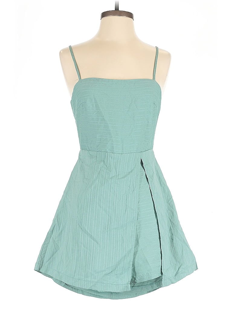 Merci Romper, Size: Small. Item Details: Teal, Square Neckline, Flared Leg, Sleeveless, Women's Dresses, Polyester/Rayon/Spandex