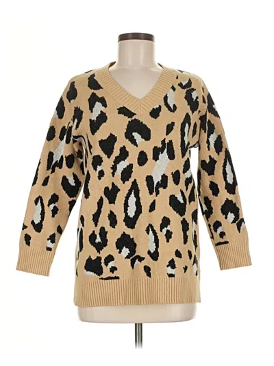 Merokeety Pullover Sweater, Size: Medium. Item Details: Tan, Animal Print Pattern, V Neck, 3/4 Sleeve, Women's Tops