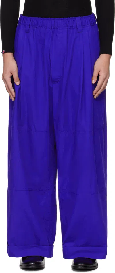 Cotton twill trousers. · Concealed drawstring at elasticized waistband · Belt loops · Four-pocket styling · Mock-fly · Rolled cuffs · Logo patch at back pocket · Partial plain-woven lining Supplier color: Blue
