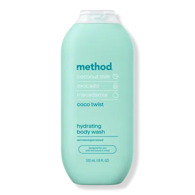 BODY WASH COCO TWIST. Benefits: Leaves skin feeling soft, hydrated, and smelling delightful. Method Coco Twist Body Wash is made without parabens or phthalates. Smells like tropical nirvana with notes of coconut, avocado, and macadamia oil. Key Ingredients: Coconut milk is rich in fatty acids that helps moisturize the skin. Macadamia supports the hydration of the skin. Avocado helps condition and soothe. Formulated Without: Parabens. Phthalates.