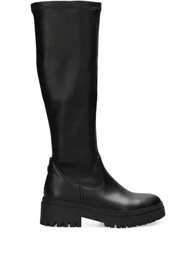 black zip fastening lug sole pull-on style round toe stretch-design