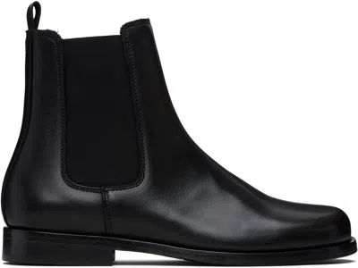 Ankle-high buffed leather boots. · Elasticized gusset at sides · Pull-loop at heel collar · Aniline-dyed leather lining · Hand-stacked leather heel and midsole · Leather sole with rubber injections Supplier color: Black crust