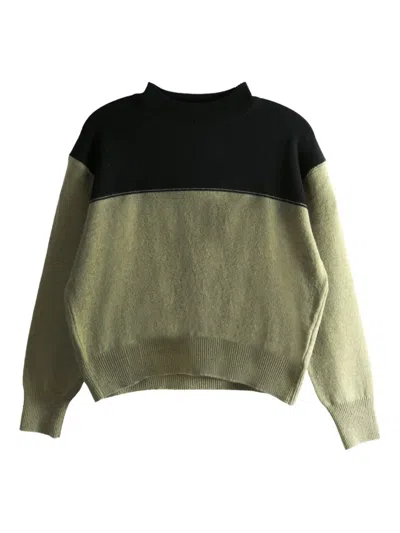 Colour-block Wool Sweater In Green