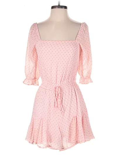 Mi ami Romper, Size: 2X-Small. Item Details: Pink, Polka Dots Pattern, Square Neckline, 3/4 Sleeve, Women's Dresses, 100% Polyester
