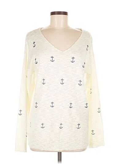 Mia + Tess Pullover Sweater, Size: Medium. Item Details: Ivory, V Neck, Long Sleeve, Women's Tops