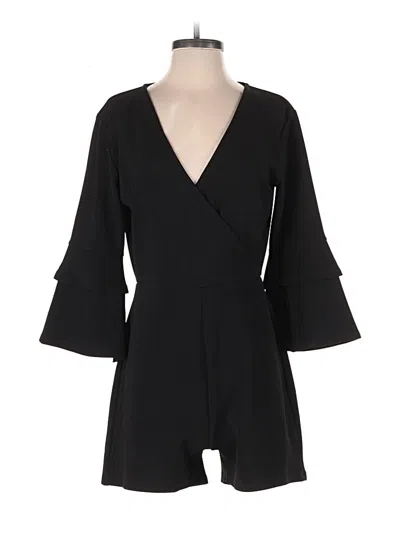 Miami Romper, Size: Medium. Item Details: Black, Solid Pattern, Plunge Neckline, 3/4 Sleeve, Cut Outs, Women's Dresses, Polyester/Spandex