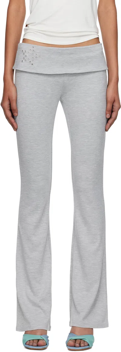 Stretch jersey lounge pants. Metal eyelets at elasticized foldover waistband. Supplier color: Heather grey