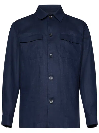 MICHAEL COAL Tailored Fit Blue Linen Canvas Field Jacket