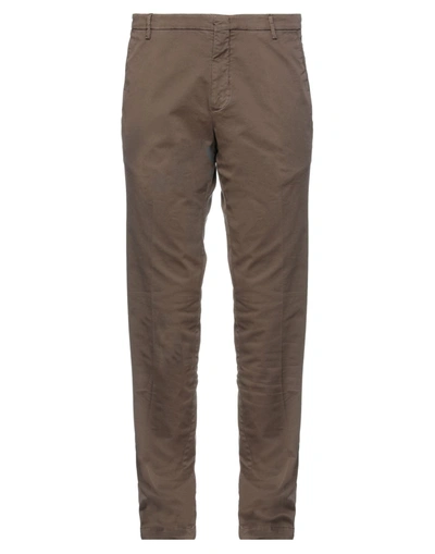 plain weave, contrasting applications, logo, mid rise, basic solid color, regular fit, tapered leg, snap-buttons, zip, multipockets, stretch, small sized , Color: Brown , Size: 40