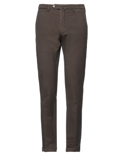 plain weave, brand logo, houndstooth, low waisted, tapered leg, slim-leg pants, button closing, zipper closure, cuffed hems, multipockets, stretch, small sized, belt loops , Color: Brown , Size: 35