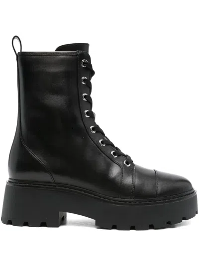The Blake combat boot from Michael Kors combines modern design with functionality. It features a sleek black leather exterior, complemented by black cotton laces and gold eyelets. A side zip closure allows for easy wear, while the sturdy black rubber sole provides stability and a fashionable lift. Black leather exterior Black cotton laces Gold eyelets Side zip closure Black rubber sole Height - 5.5 cm