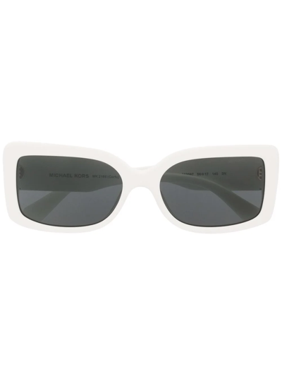 White/black/gold Corfu rectangle-frame sunglasses from MICHAEL KORS featuring textured finish, rectangle frame, tinted lenses, gold-tone hardware, engraved logo, straight arms and curved tips. These glasses come with a protective case.. All glasses from FARFETCH are sold as non-prescription frames..