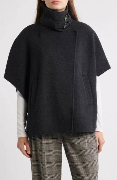 Perfect for transitioning seasons, this cropped cape cinched with buckled straps is made from a cozy double-face wool blend. Buckles at neck Dropped shoulders Front welt pockets 80% wool, 18% polyester, 2% other fibers Dry clean Imported