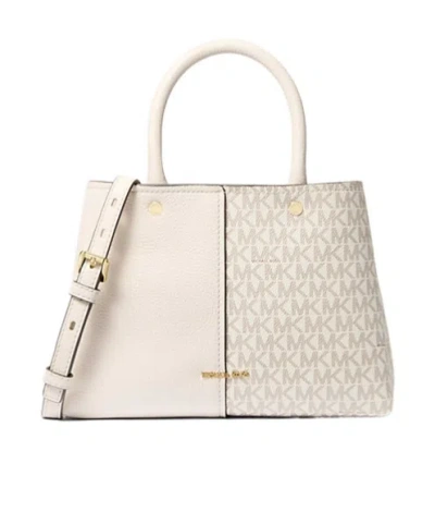 MICHAEL KORS Flora Medium Signature Logo And Leather Satchel In Natural