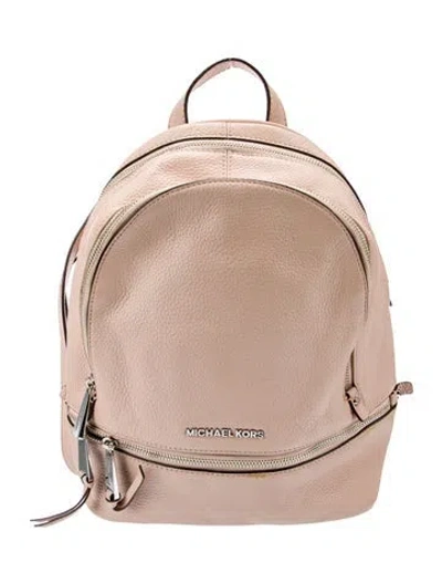 Michael Kors Backpack Pink Leather Silver-Tone Hardware Flat Handle & Dual Adjustable Shoulder Straps Dual Exterior Pockets Logo Jacquard Lining & Four Interior Pockets Zip Closure at Top Includes Dust Bag Unfortunately, due to restrictions, this item may not be eligible for shipping in all areas. | Michael Kors Leather Backpack in Pink