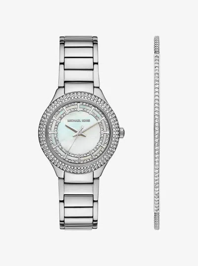 MICHAEL KORS OUTLET Mini Sylvia Pavé Silver-tone Watch And Bracelet Gift Set