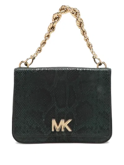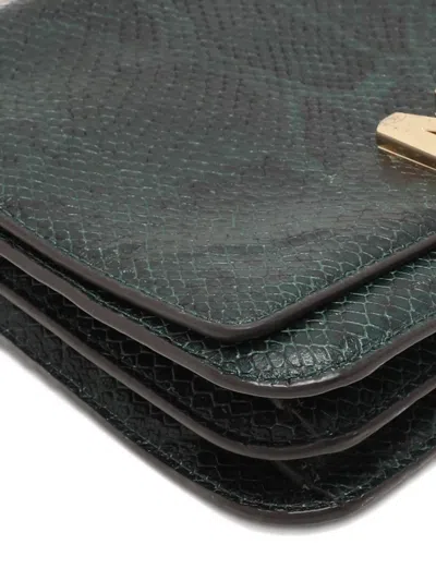 Pre-owned Python-embossed Chain-link Shoulder Bag In Green