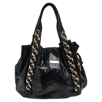 Pre-owned Black Python Embossed Leather Tote