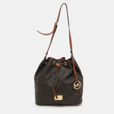 Pre-owned Dark Brown Signature Coated Canvas And Leather Frankie Drawstring Bucket Bag