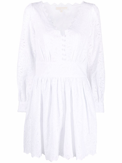 MICHAEL Michael Kors' mini dress is made from broderie anglaise cotton depicting tropical palm motifs. It's designed with scalloping along the V-neckline and hem and nips in flatteringly at the waist before falling to a softly pleated skirt. Wear yours with lace-up sandals.- For Women.