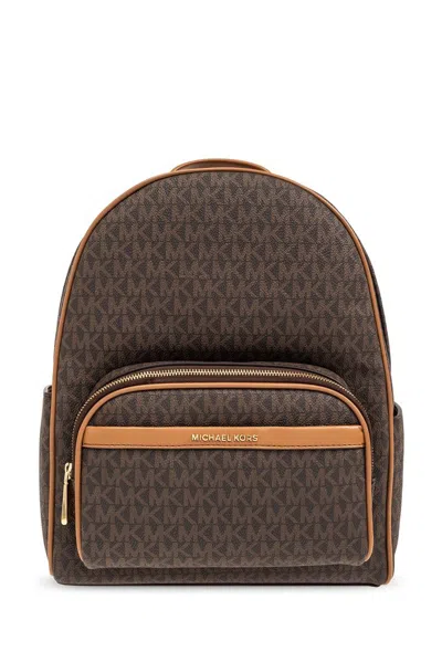 The Michael By Michael Kors medium backpack combines functionality with sophistication. Its rounded silhouette features a signature monogram pattern, complemented by gold-tone hardware. A front zip pocket and adjustable shoulder straps ensure comfort, while the top handle adds versatility, making it perfect for casual outings or elegant events.- Composition: 89.4% PVC, 9.6% Polyester, 1% Polyurethane - Made in Indonesia