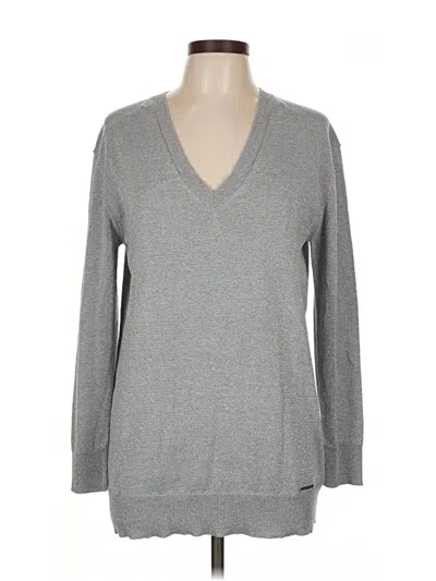 MICHAEL Michael Kors Pullover Sweater, Size: Large. Item Details: Gray, V Neck, Long Sleeve, Women's Tops, Cotton/Acrylic/Polyester