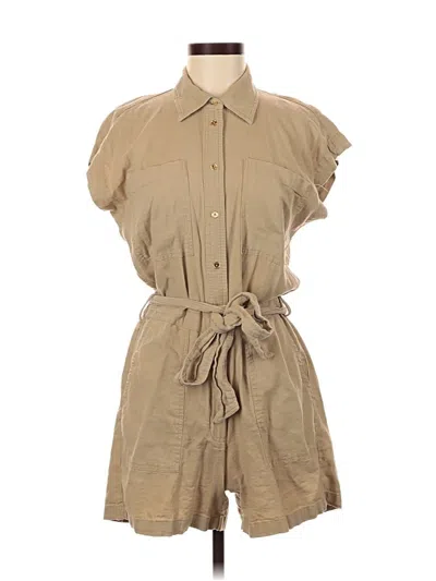 MICHAEL Michael Kors Romper, Size: Medium. Item Details: Tan, Solid Pattern, Collared Neckline, Straight Leg, Short Sleeve, Frayed Edges, Women's Dresses