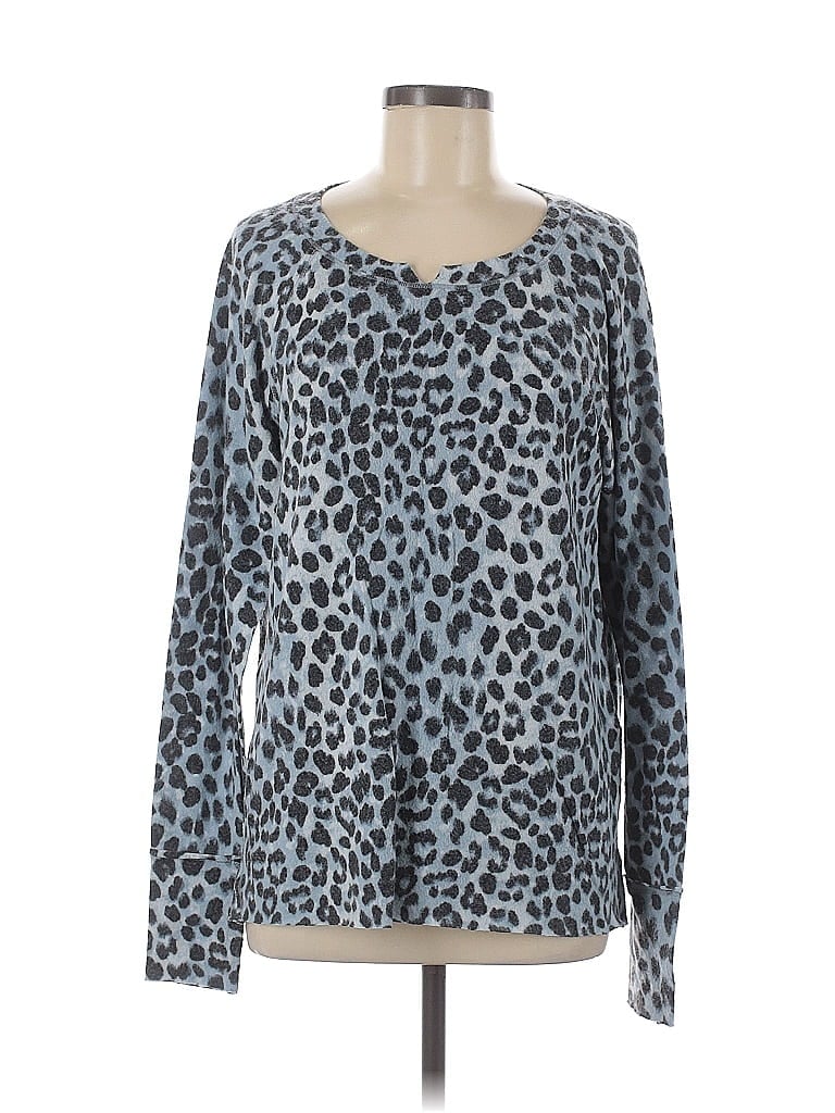 Michael Stars Pullover Sweater, Size: Medium. Item Details: Blue, Animal Print Pattern, Scoop Neck, Long Sleeve, Women's Tops, Rayon/Polyester/Spandex