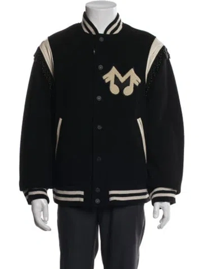 Pre-owned Wool Striped Varsity Jacket In Black